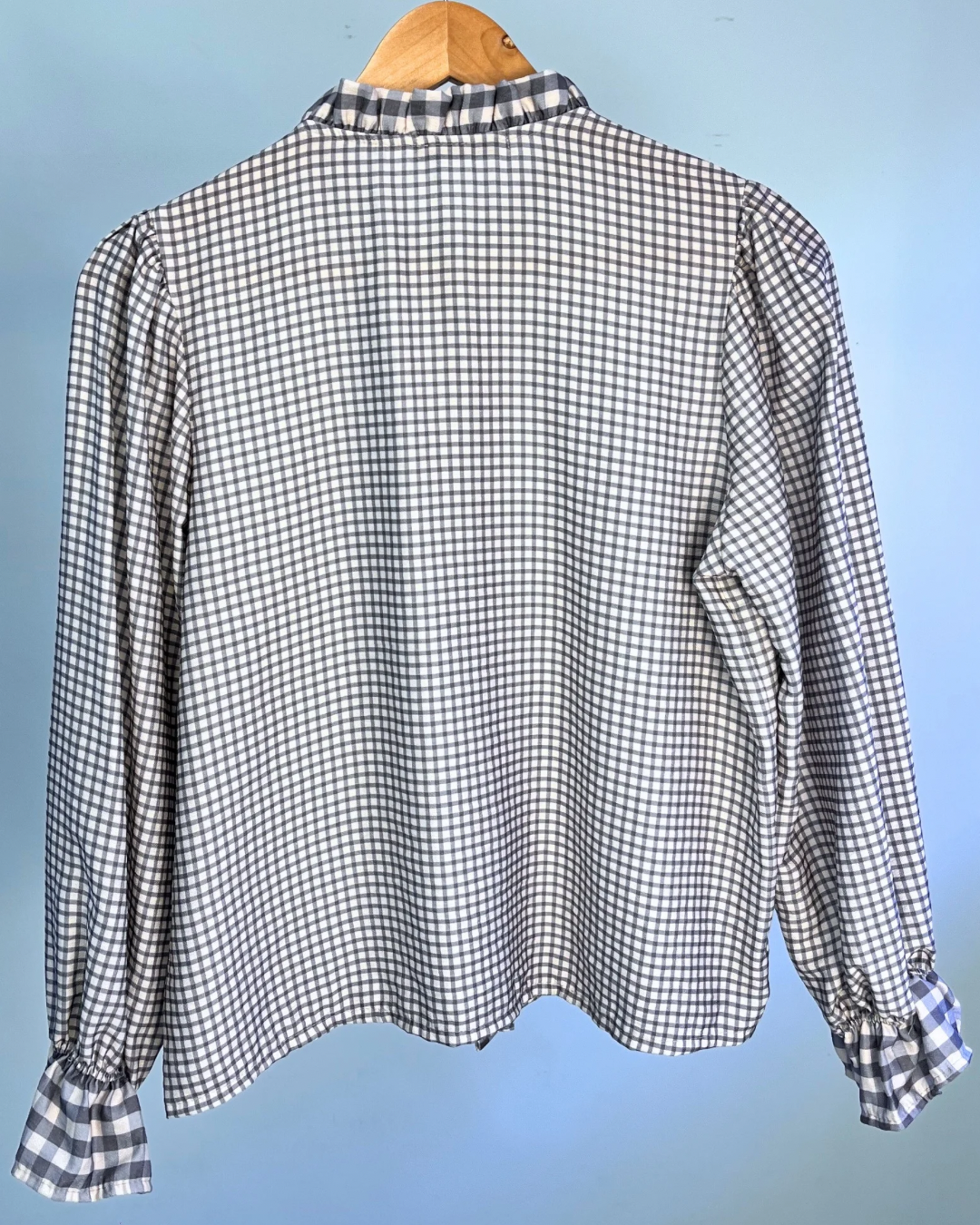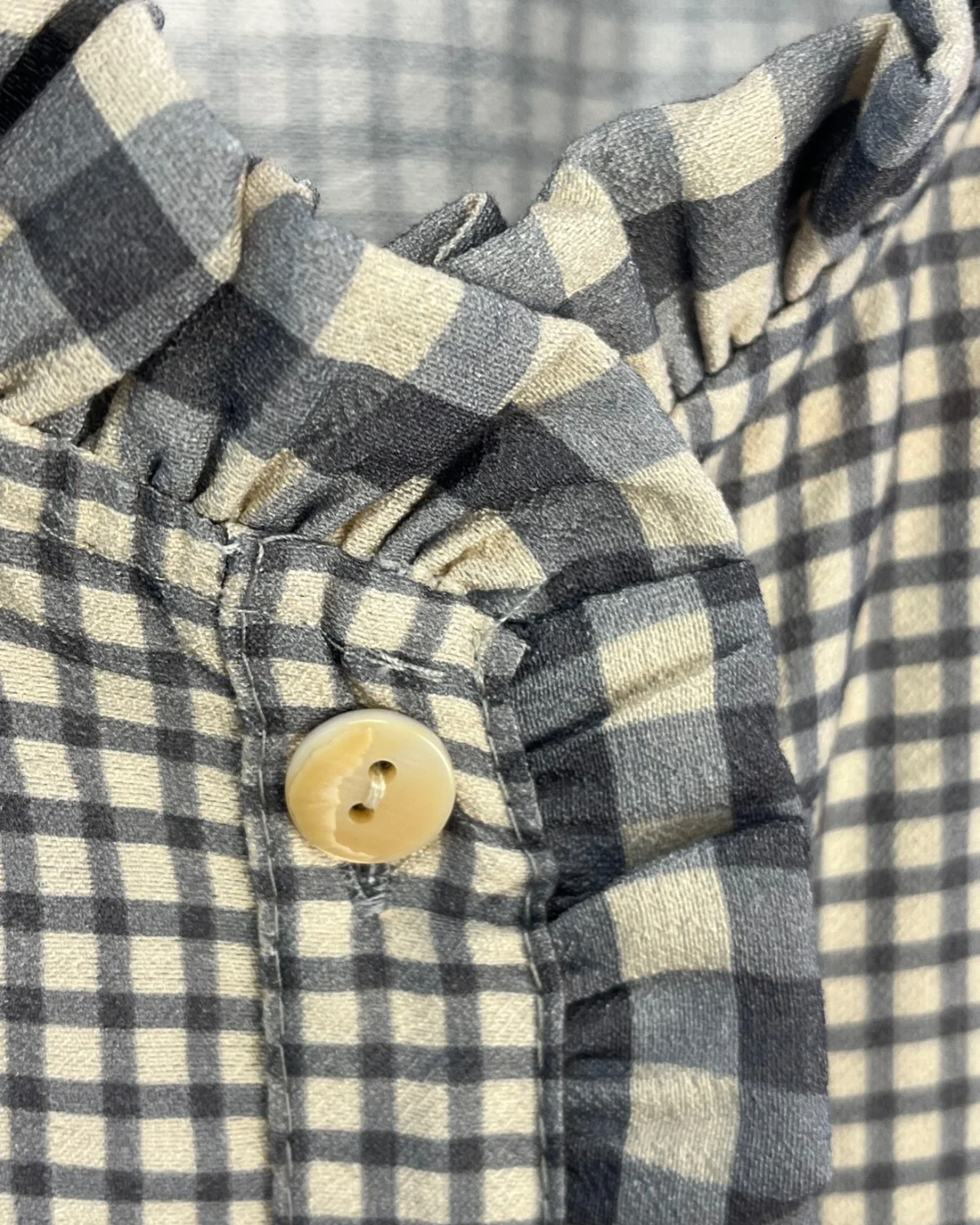 Camisa vichy con diferente patrón que recorre cuello y cierre de camisa. El ribete en vichy aporta clase y estilo, consiguiendo una apariencia vintage casual y fresca.
