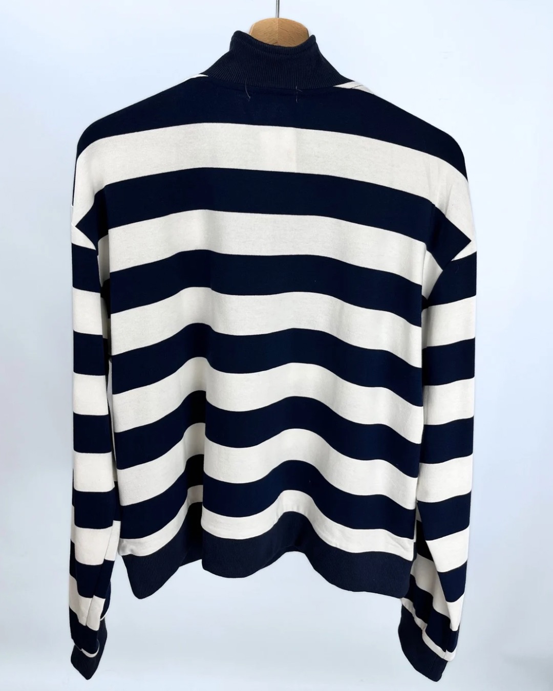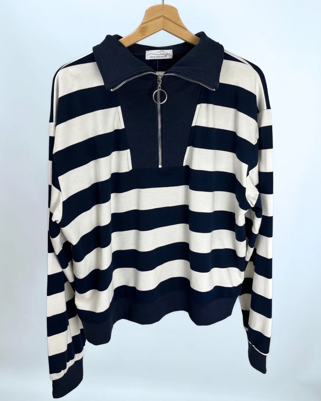 Sudadera con cierre de cremallera a rayas, estilo casual.
