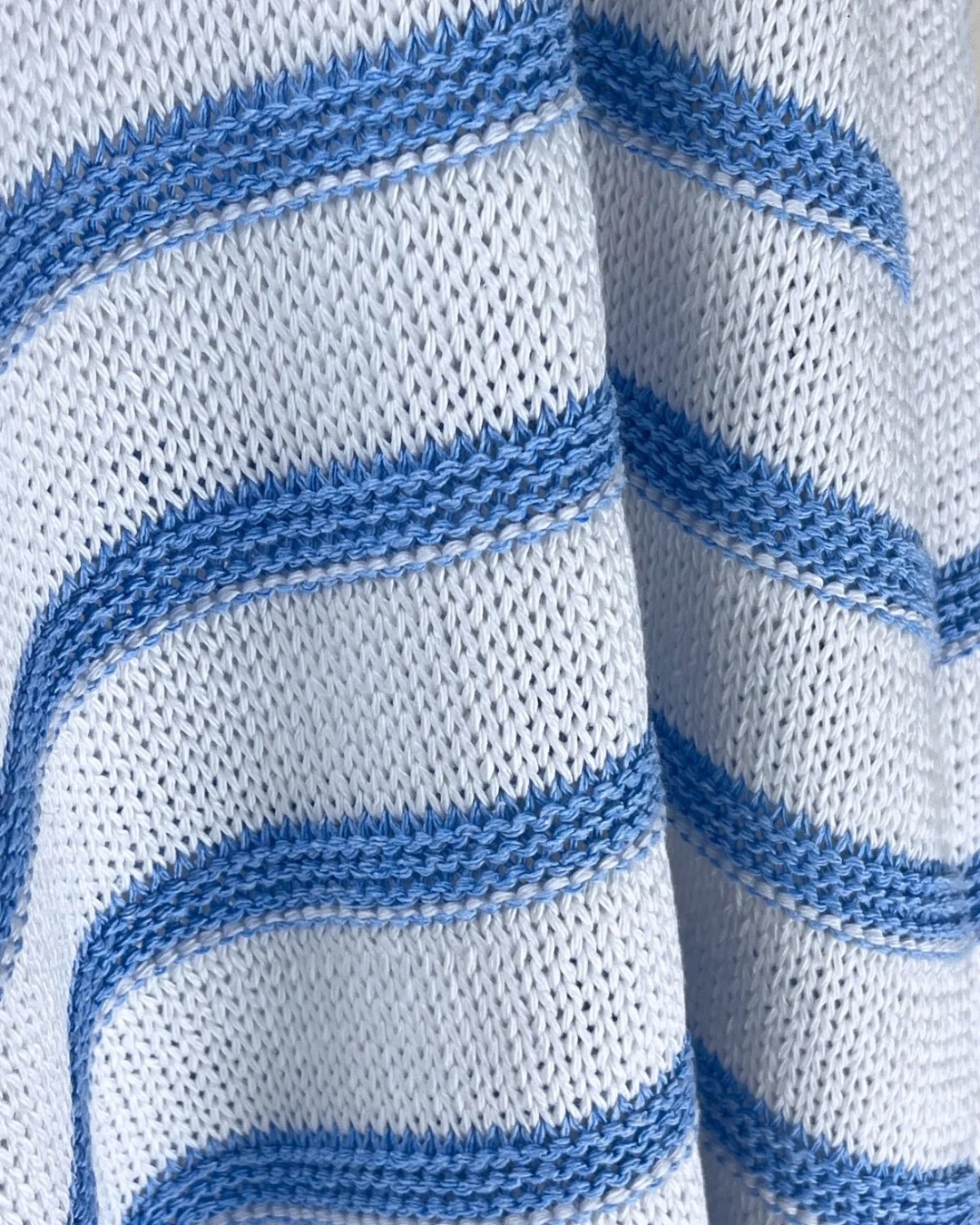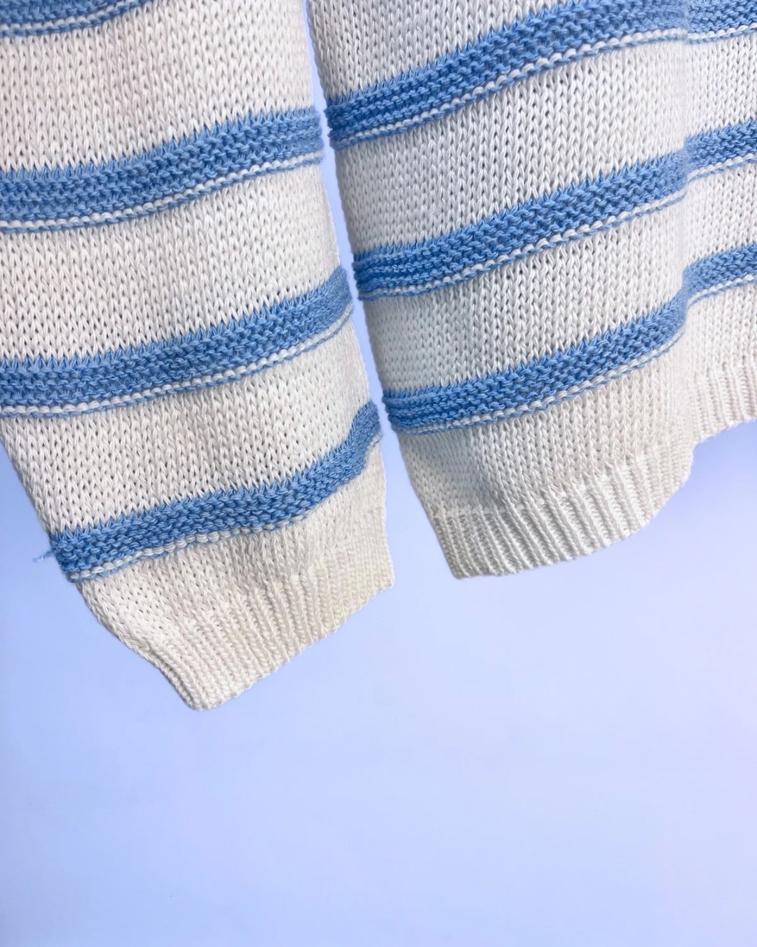 Suéter primaveral ancho con rayas, estilo casual, ideal para combinar con jeans.