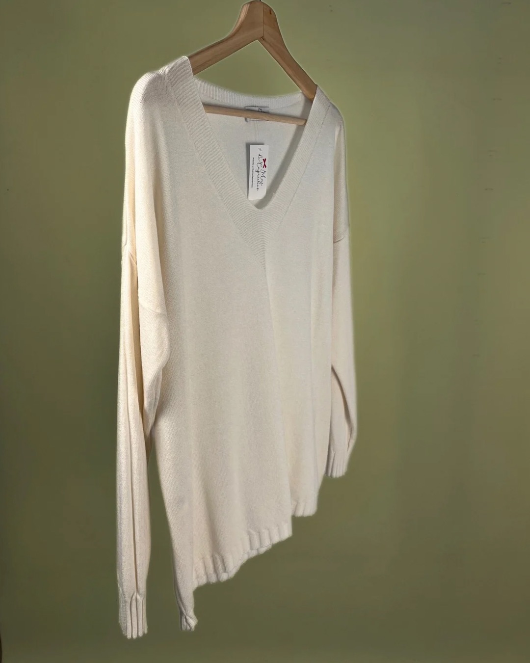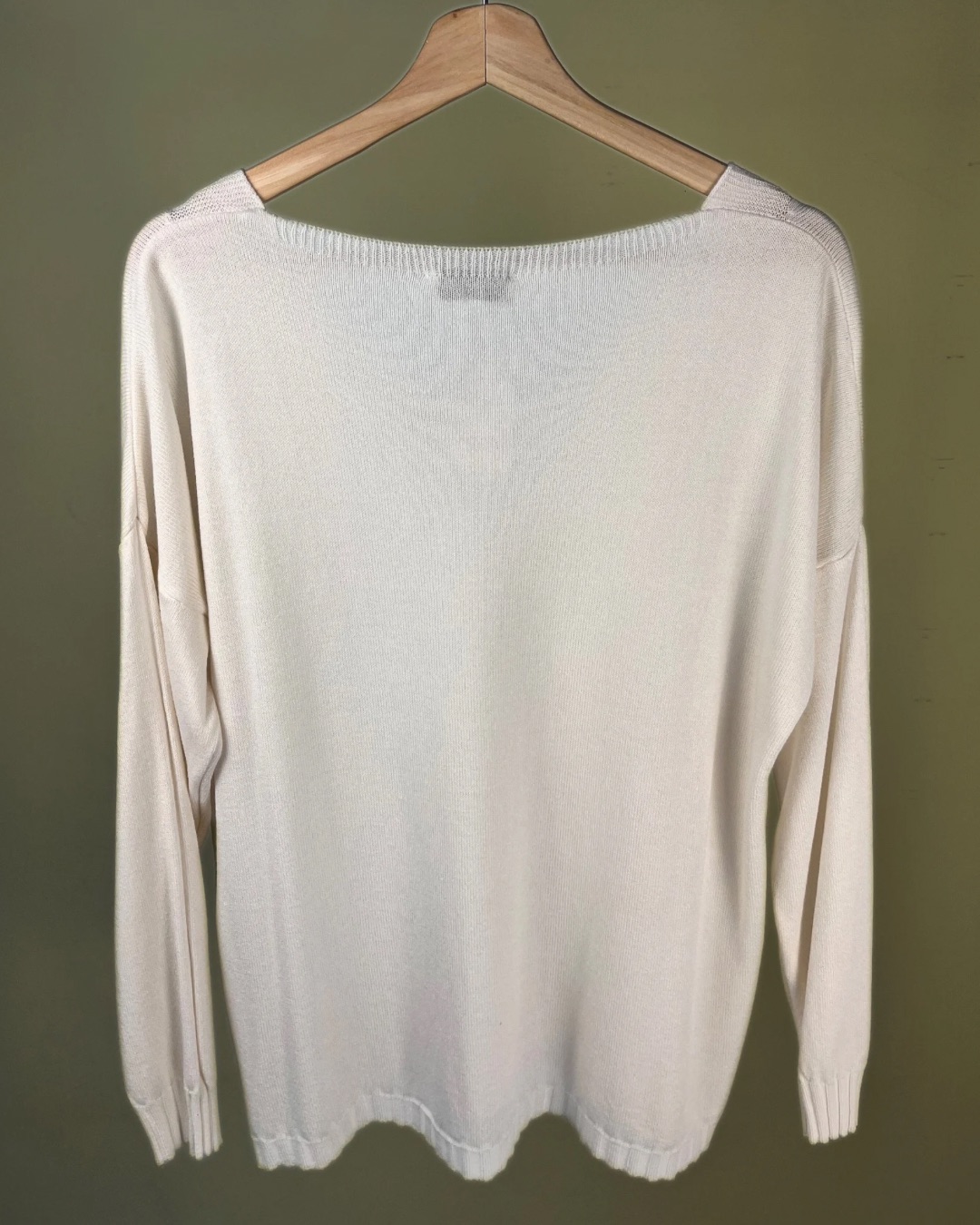 Suéter de cuello en pico ideal para crear un fondo de armario primaveral, de buena calidad.