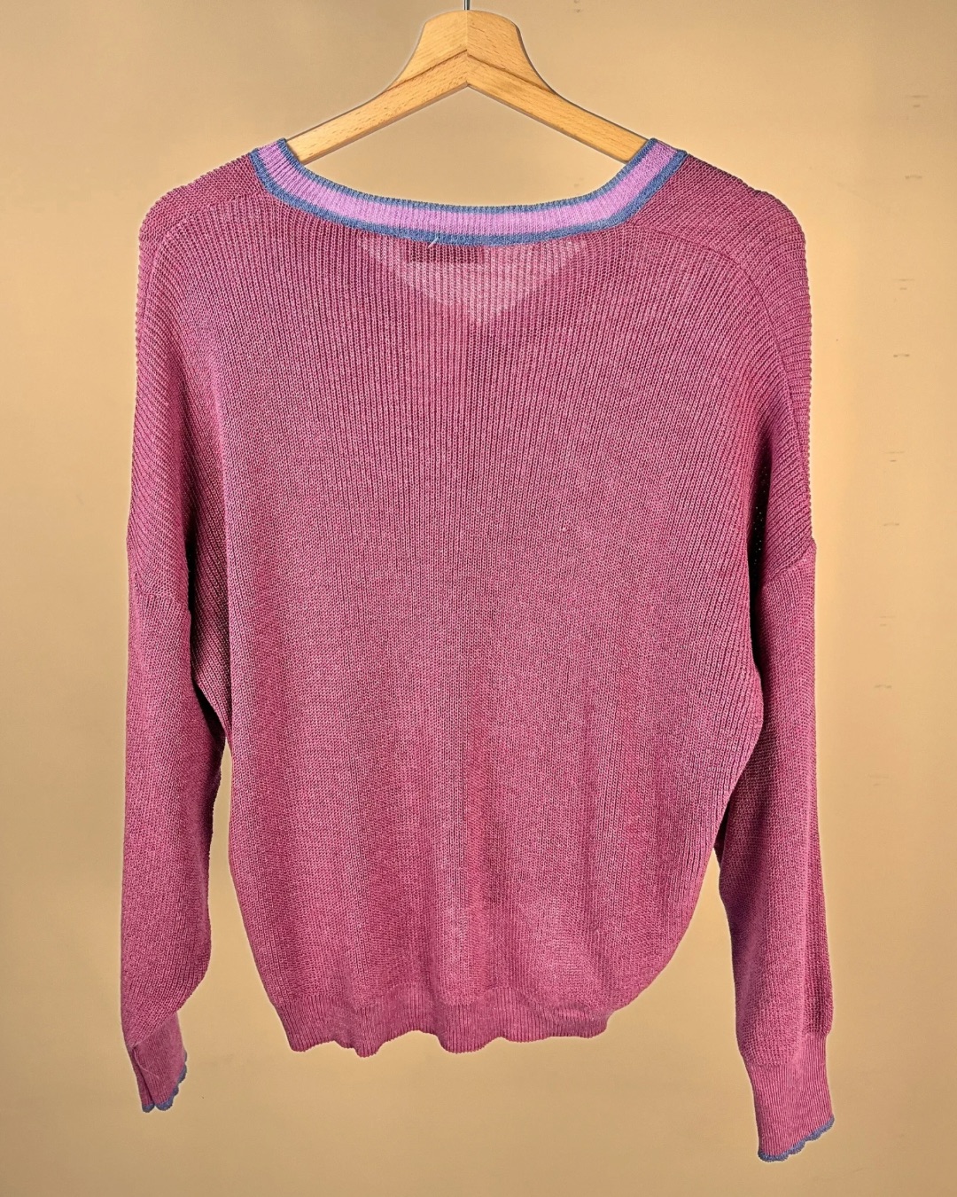 Suéter en tonos frambuesa con detalles en puños y cuello, ideal para la primavera